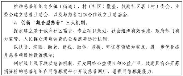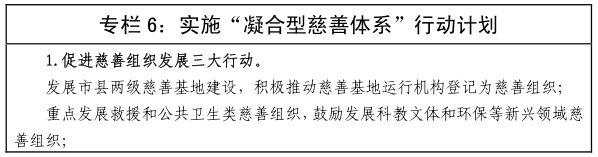 (四)打造多元活力的凝合型慈善體系 強化黨委領導、政府引導、行業自律、法治保障、智慧支撐的現代慈善體制機制建設,以促進與監管“兩手抓”的思路,全力打造多元凝合發展工作機制,有效形成人人參與、人人可為、人人有為的“凝合型慈善體系”。 15.推動“互聯網+慈善”集成發展。打造全市統一的集行業管理、數據統計、信息公開等功能為一體的管理工作平臺,通過線上線下平臺的相互融合,形成覆蓋市、區兩級的管理工作體系。做強縣(市、區)慈善基地,在組織孵化、項目交流、人才培養、資源整合等方面形成集聚輻射。發揮網絡技術優勢,借助互聯網、區塊鏈等,推進“鏈上公益”“指尖公益”,方便群眾開展慈善活動。鼓勵具有公開募捐資格的慈善組織在網絡募捐平臺開設慈善網店,增強網絡募捐能力。支持互聯網公益慈善基地建設,培育互聯網慈善理念,開發網絡公益項目和公益產品。 16.促進慈善行業凝合發展。著力發揮政策集成效應,為慈善組織提供良好的工作空間、網絡空間、社交空間和資源共享空間。加快市、縣(市、區)慈善總會體制機制轉型升級,打造聯合型、支持型慈善組織,將工作重心移轉至推動區域慈善行業發展。切實推進“互聯網募集”,發動慈善組織開展“項目募捐”,建強凝聚慈善力量的主陣地。加強市內慈善組織與省內、國內同行間,慈善組織、企業、政府、媒體、學界等各領域間的交流合作,為慈善行業可持續發展匯集社會資源。整合高等院校、科研機構和慈善組織等資源,加快培養一批長期參與慈善服務、熟練掌握崗位技能的專業化慈善人才隊伍,著重培養一批富有社會責任感、熟悉現代慈善理論的慈善管理人才。 17.堅持促進與監管并重發展。大力發展慈善組織和慈善信托,建立和完善慈善力量參與突發事件應對體制機制。健全慈善信息和數據共享機制,建立全市慈善信息統計發布制度和以大數據為基礎的慈善行為記錄制度,提高慈善組織的社會公信力和信息公開透明度。加強對慈善活動的監督管理,規范慈善行為,引導慈善組織規范管理和形成行業自律機制。完善志愿服務激勵與保障措施,引導志愿服務力量扎根社區和民政服務機構常態化開展服務。到 2025 年,慈善組織總量達到 100 家,基本形成多元化、規范化、專業化、智慧化的新時代慈善事業高質量發展的新格局。推動多模式并存、差異化管理、多元化互補的福利彩票分 類分級銷售渠道體系,更新購彩理念,完善渠道布局,強化技術保障,把公益品牌宣傳與市場營銷有機融合。