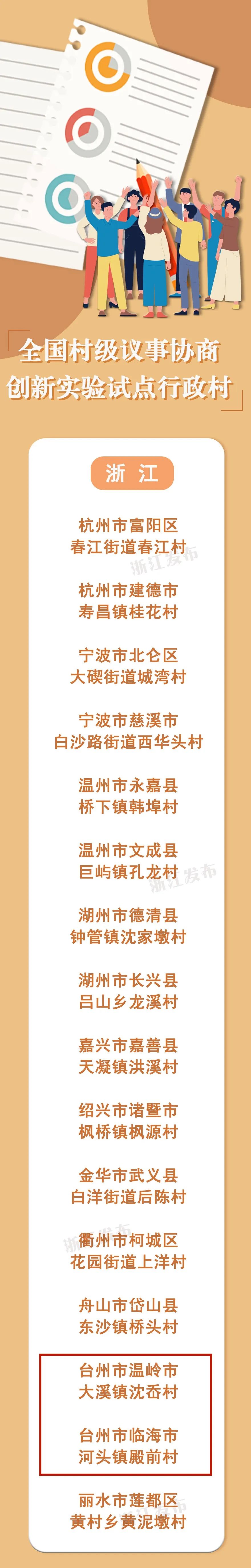 目前,浙江共有16個全國村級議事協(xié)商創(chuàng)新實驗試點行政村,臺州兩個村入選!