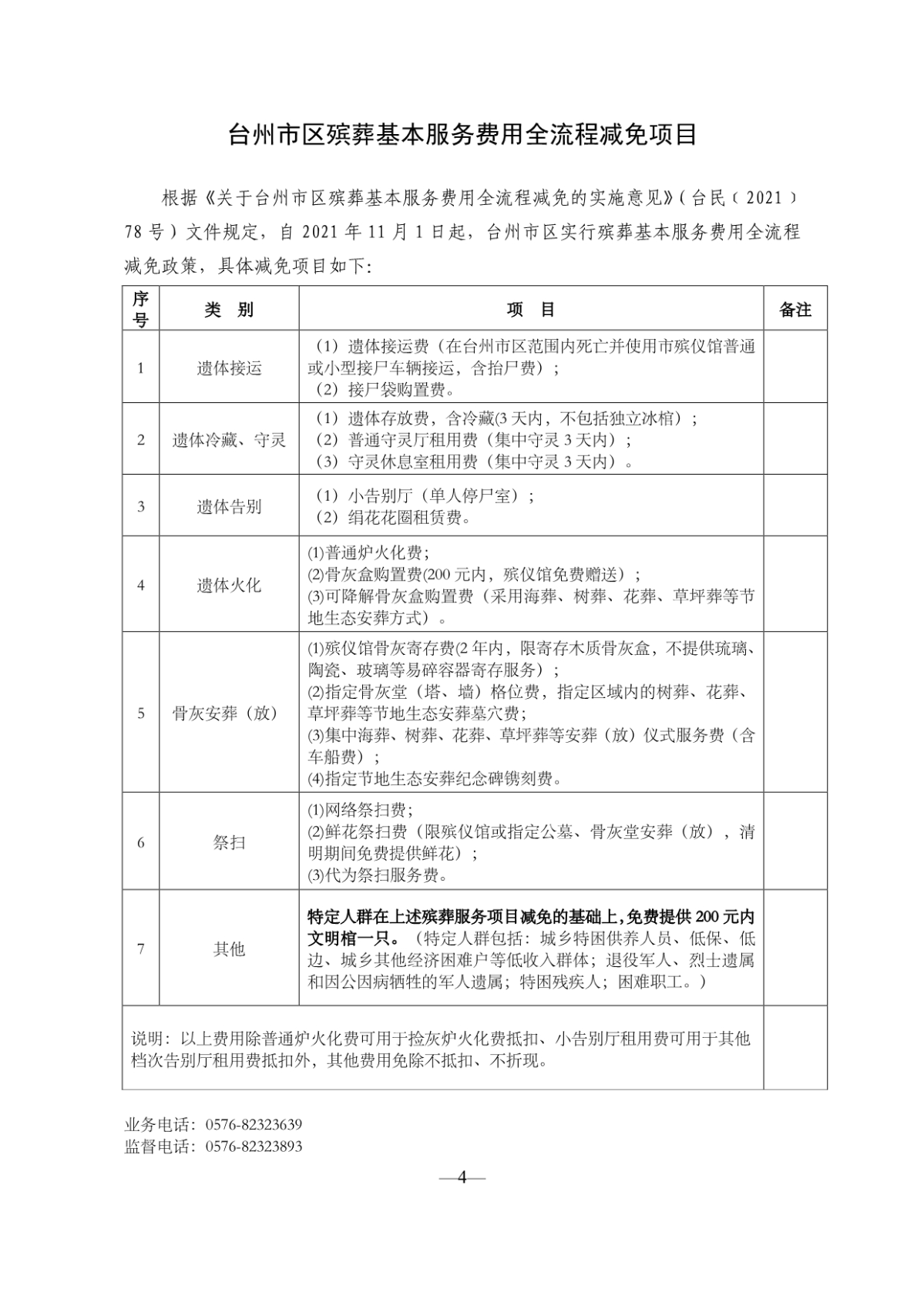 臺州市區(qū)殯葬基本服務費用全流程減免項目