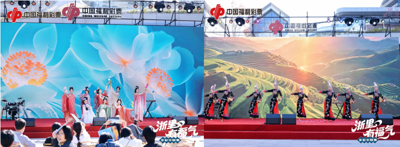“尋夢江南秘境,邂逅畬鄉(xiāng)風(fēng)情”——11月29日,浙江省福利彩票管理中心在麗水開展2025福彩公益文化和責(zé)任彩票推廣活動——“浙里有福氣·多彩豐收集”,這也是本年度該系列主題活動最后一場,數(shù)百位熱心公益的社會大眾、福彩“愛心驛站”代表、媒體記者代表等歡聚麗水銀泰城,一同參加這場好聽、好看、好玩又有驚喜的趣味公益盛會。 此次活動將福彩文化IP和麗水城市特色相融合,以年輕活力、快樂有趣為基調(diào),以音樂為表現(xiàn)形式,以宣傳推廣福彩公益文化和責(zé)任彩票、提升福彩品牌形象為目的,打造了這場集文娛表演、趣味互動、福彩文化推廣及福彩愛心志愿服務(wù)為一體的沉浸式體驗活動。 活動一開始,一段充滿活力的《花舞福滿城》開場舞點燃了現(xiàn)場氛圍,吸引著眾多市民駐足觀看。隨后“中國好聲音”知名歌手潘韻淇深情獻(xiàn)唱《蝴蝶泉邊》和《七里香》,此外,諸多經(jīng)典歌曲在舞臺交織唱響,更有知名樂隊UFO樂隊助陣演唱,具有濃濃麗水本地特色的舞蹈秀《柚見畬鄉(xiāng)福滿秋》,展現(xiàn)了當(dāng)?shù)禺屪迦嗣竦臒崆楸挤牛约皩μ飯@豐收喜悅之情的樸素表達(dá)。輪番登場的勁歌熱舞和激情四射的青春活力將現(xiàn)場打造成歡樂的海洋。