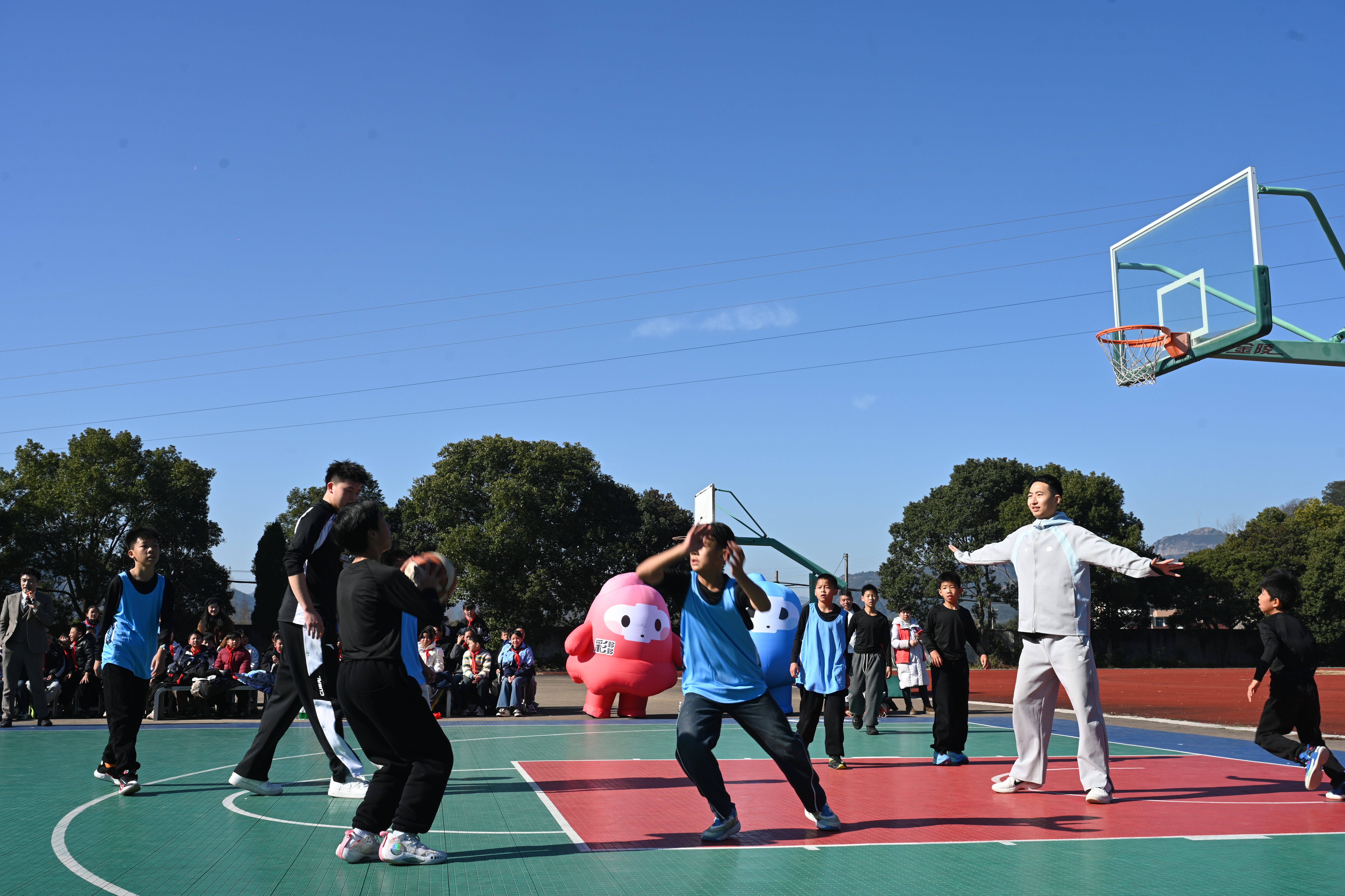 12月29日圓夢儀式當(dāng)天,主辦方還為孩子們準(zhǔn)備了一份驚喜——邀請浙BA臺州隊球員王子予和鄭宇航來到學(xué)校。兩名球員各帶一隊小球員,開展了一場訓(xùn)練賽,這讓整個校園沸騰了。