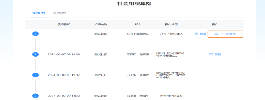 ? 7.當辦件流程顯示為“已完成”時,民辦非企業單位年度檢查流程正式辦結,可在線下載2025年度《民辦非企業單位年度工作報告書》。 |